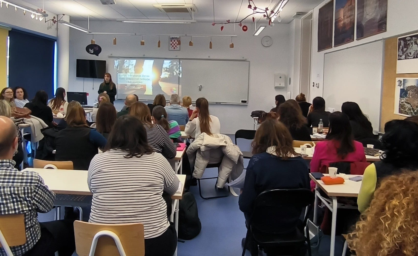 Predavanje “Emocionalna pismenost – za nastavnike” okupilo je 37 nastavnika, koji su kroz predavanje i primjere učili o tehnikama samopomoći koje mogu primijeniti u razredu s učenicima ili osobno u svakodnevnom životu.