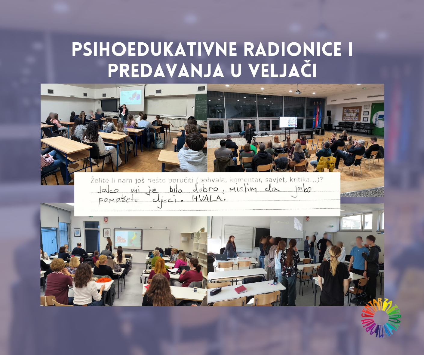 Tijekom veljače 2026. godine održano je 92 psihoedukativne radionice za učenike u više osnovnih i srednjih škola, 8 predavanja za roditelje i 2 predavanja za stručnjake koji rade u školama.
