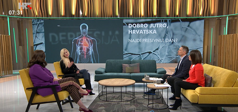 U ponedjeljak 16. 1. 2023., na dan koji se posljednjih 20ak godina popularno naziva "Blue Monday" ili "plavi ponedjeljak", naša je Voditeljica, klinička psihologinja Selak Bagarić gostovala u HRT-ovoj emisiji Dobro jutro, Hrvatska na temu depresivnosti.