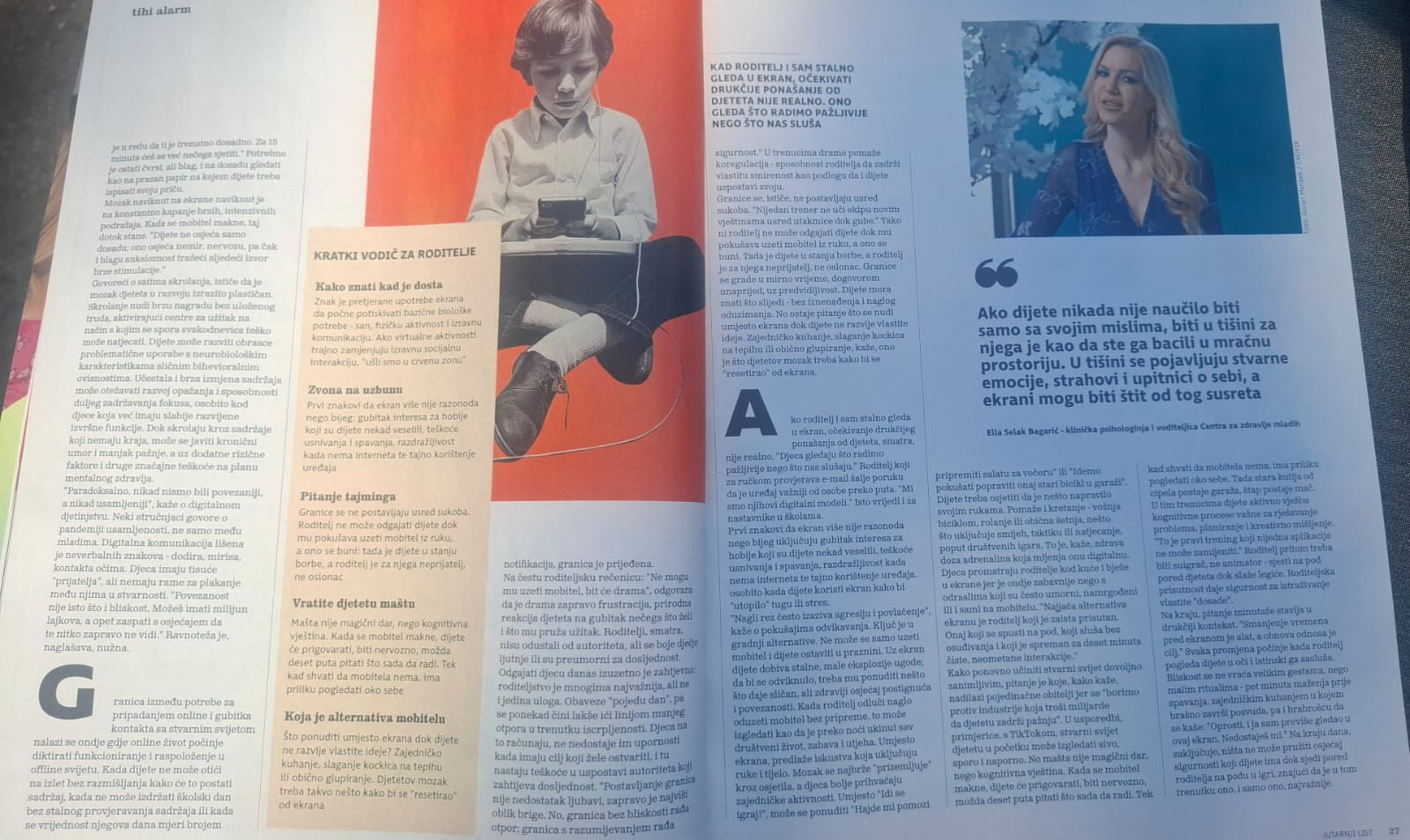 Kako postaviti granice i tehnologiju pretvoriti u alat, a ne u utočište? Na to pitanje odgovorila je voditeljica Centra za zdravlje mladih, klinička psihologinja Ella Selak Bagarić, u razgovoru s novinarkom Ladom Novak Starčević za Jutarnji List.